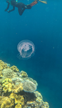 I snorkeled the entire time until they called us back to the boat where we ate lunch before heading to our next snorkel spot. The next snorkel spot was in jellyfish infested waters. It was stinger season so we all were fitted in stinger suits that covered our entire head and body. There were tons and tons of pink jellyfish floating on the surface of the water. They boat came to a stop and we all jumped in. Initially, I had trouble finding the reef as this part of the ocean was just open with tons of jellyfish. As I kept swimming I neared the edge of the spectacular reef. The formations of the reef are unreal and so beautiful! Left untouched mother nature is truly something. There wasn't any sunscreen bleaching either which was amazing! Everything was so crystal clear and I had never seen reefs this stunning. I absolutely loved snorkeling in the Great Barrier Reef and hope to return one day!