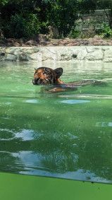 The next animal I got lucky with were the tigers! There were three of them and the biggest one was asleep while the two smaller ones played with each other constantly snapping and lunging at one another. The tigers really gave us a show. They kept snapping at each other on land and then one of them retired to the water. I learned that tigers are actually really good swimmers. As soon as one went in the water, the other followed of course and they swam right up to the window to where we were watching them.